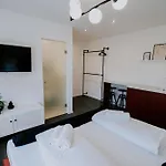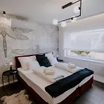 セゲドにあるMaison De Luxeの8室の客室に小型冷蔵庫、小型冷蔵庫 と防音窓が備わります。 客室にはプライベートなバスルームが備わっています。